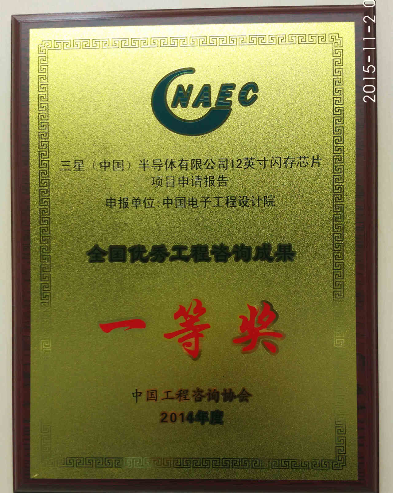 • 西安三星半導體可研報告咨詢成果獎一等獎-2014