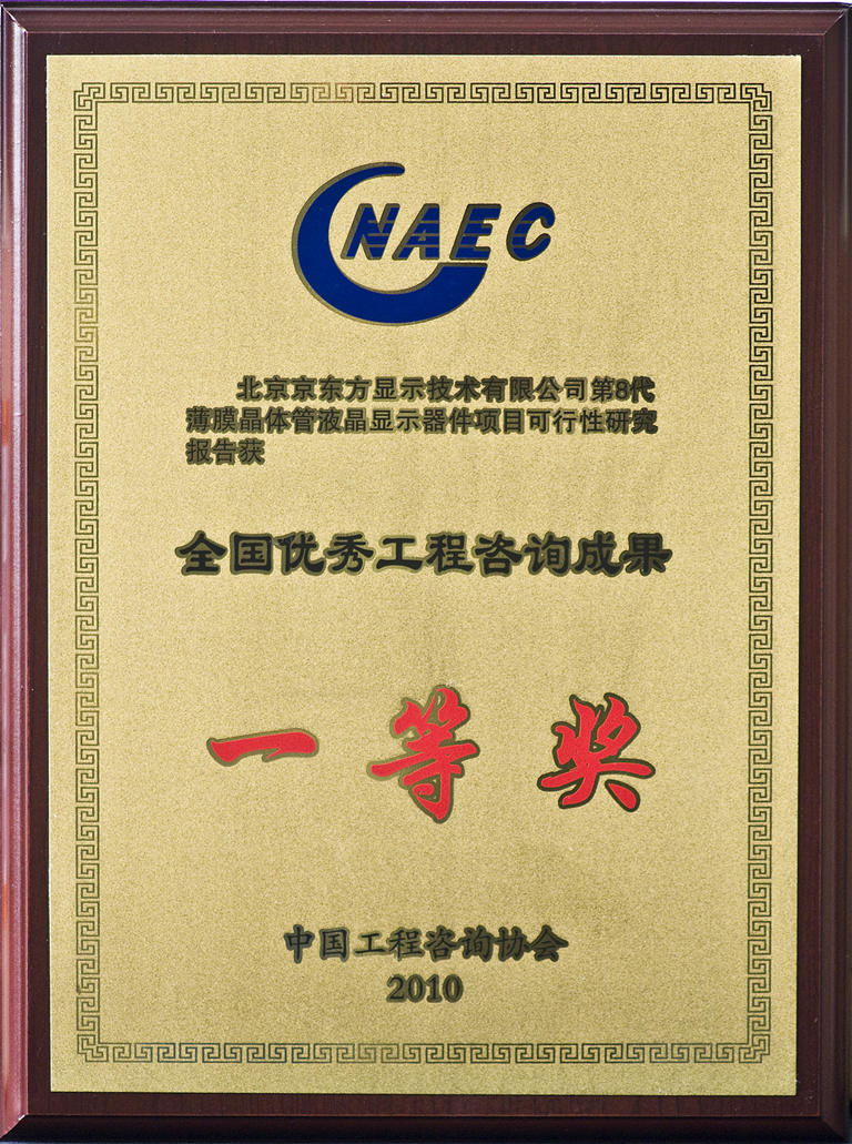 • 北京京東方顯示8代薄膜晶體管液晶顯示器件可行性報告全國優秀工程咨詢成果一等獎-中國工程咨詢協會-2010