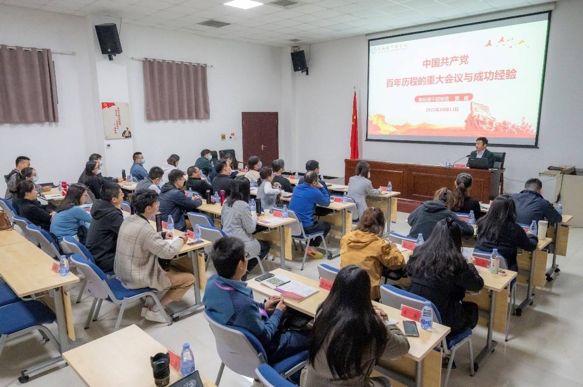 專題教學方面,邀請了焦裕祿干部學院黃建教授圍繞《中國共產黨百年歷程的重大會議與成功經驗》進行專題授課;正是黨和國家事業發展緊要時刻、轉折關頭召開的重要會議,鋪就了黨從昨天走到今天、從今天走向未來的光明征程。