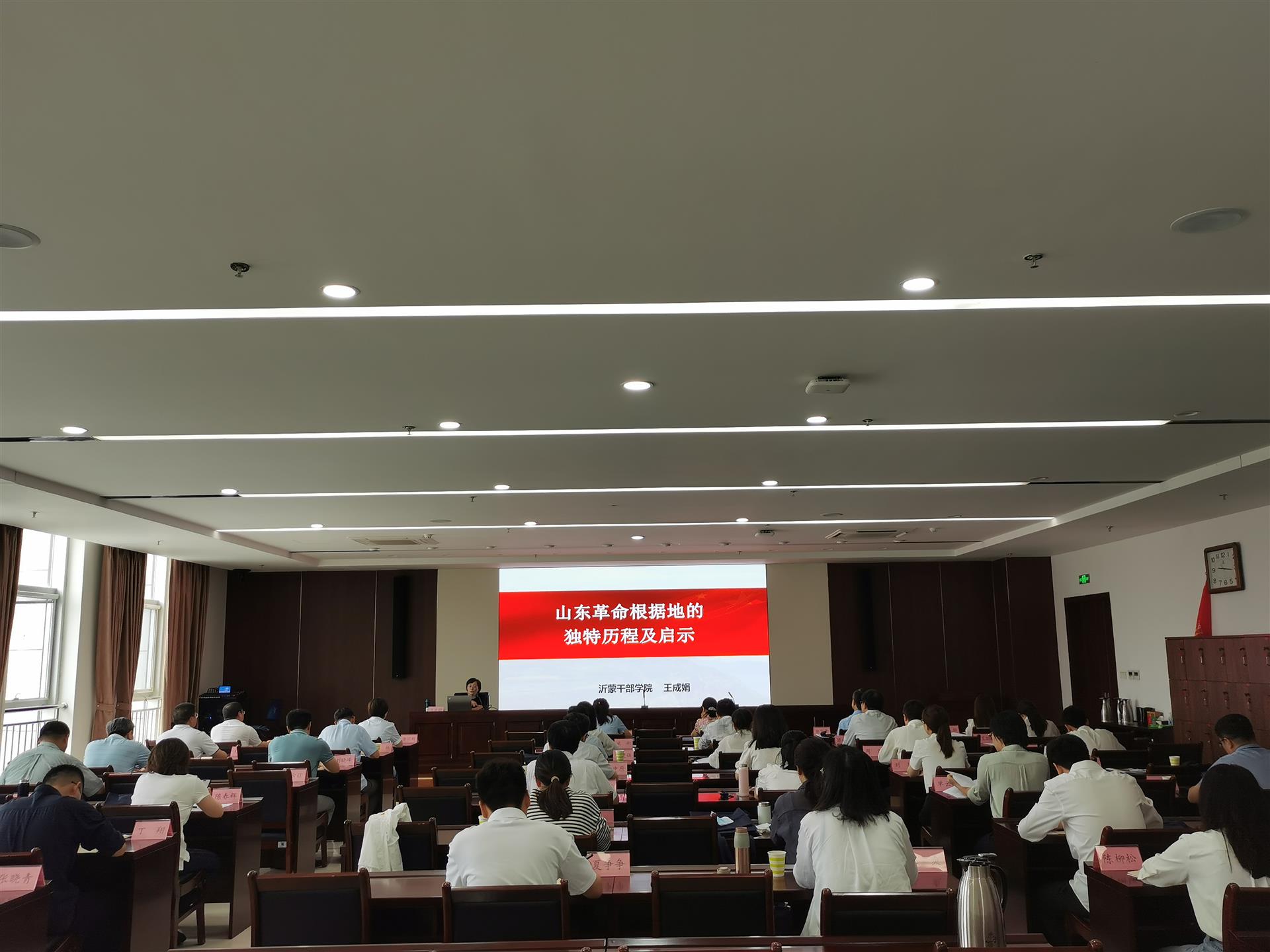 《山東革命根據地的獨特歷程及啟示》、《劉少奇 1942 年山東之行的歷史貢獻與當代啟示》,沂蒙干部學院的授課老師,以生動翔實的歷史事件,對以“黨群同心、軍民情深、水乳交融、生死與共”為核心的沂蒙精神進行了生動詮釋,全體學員深受鼓舞,既深入了解了山東革命根據地誕生、成長、發展的光輝歷程,理解了沂蒙精神的內涵與啟示,也系統學習了習近平總書記關于群眾路線的重要論述,強化了思想認識,提升了政治覺悟。此外,黨群工作部同志從黨務工作實操層面進行了專題講解,全體參訓人員在提升政治素養同時,扎實了黨務專業能力。