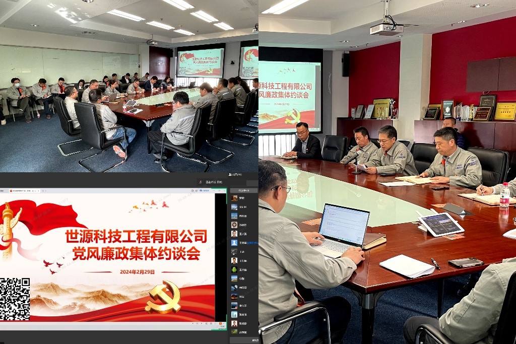 為深入貫徹黨的二十大、二十屆中央紀委三次全會精神,落實國投集團、電子院黨建和黨風廉政建設工作會部署,推動上級“一把手”抓好下級“一把手”,2024年2月29日,世源科技公司召開黨風廉政建設集體約談會,黨委書記、董事長黃文勝,紀委書記王鴻明集體約談各部門、分公司負責人、黨支部書記和工程項目經理。