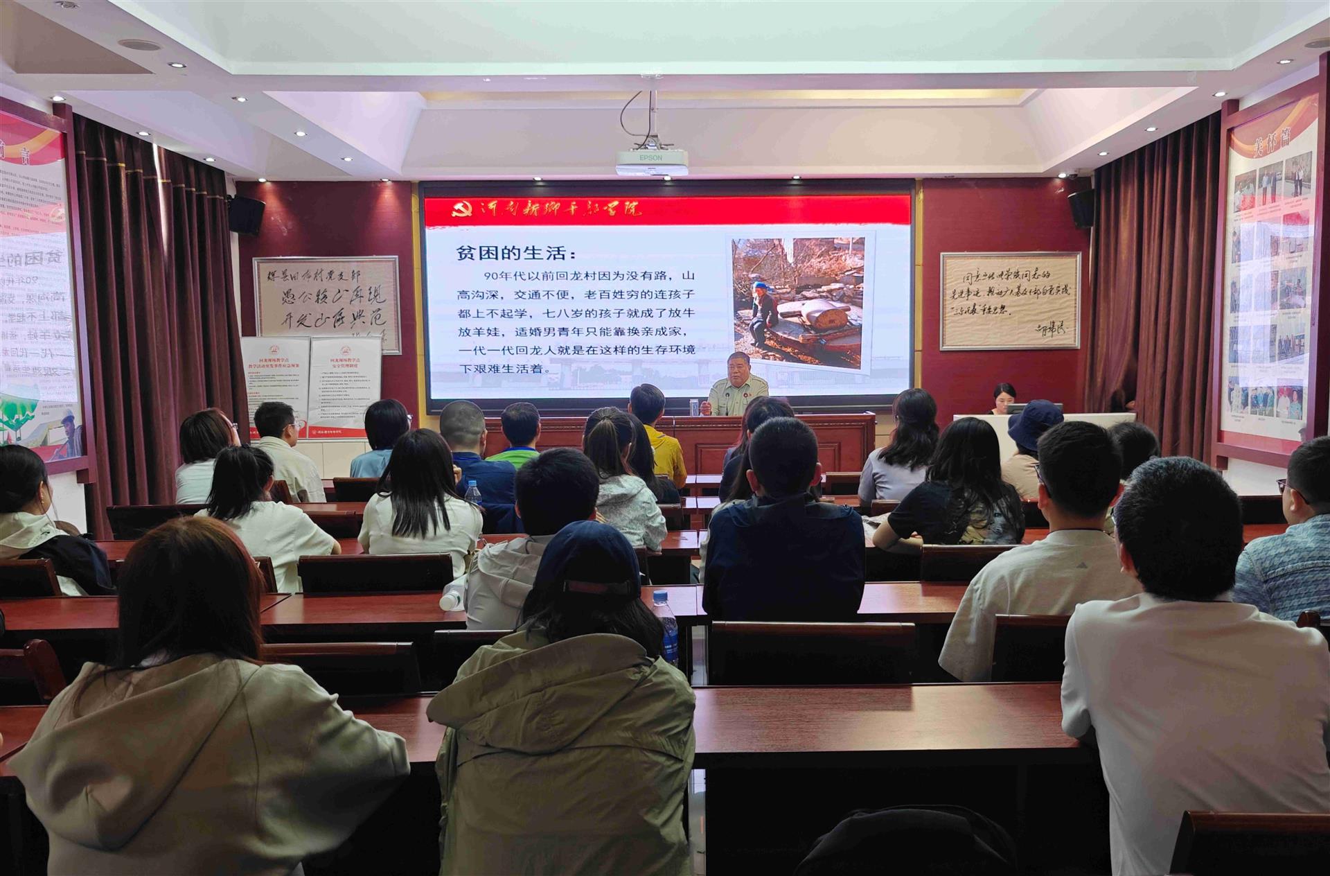 來到回龍村,穿越了回龍掛壁公路,見證“當代愚公”——全國勞動模范、2002年度感動中國十大人物之一的河南省輝縣市回龍村黨總支書記張榮鎖,變賣家產,帶領村民在絕壁上修筑了8公里長的盤山水泥路,在百丈懸崖中開鑿出1000多米長的“之”字形隧道,帶領村民走出大山奔小康的奮斗成果。隨后,參訓學員們從村民的講述中,感受回龍村翻天覆地的發展變化;與張榮鎖書記面對面,傾聽他帶領回龍村民,扳倒窮山、挖掉窮根的艱苦奮斗歷程。