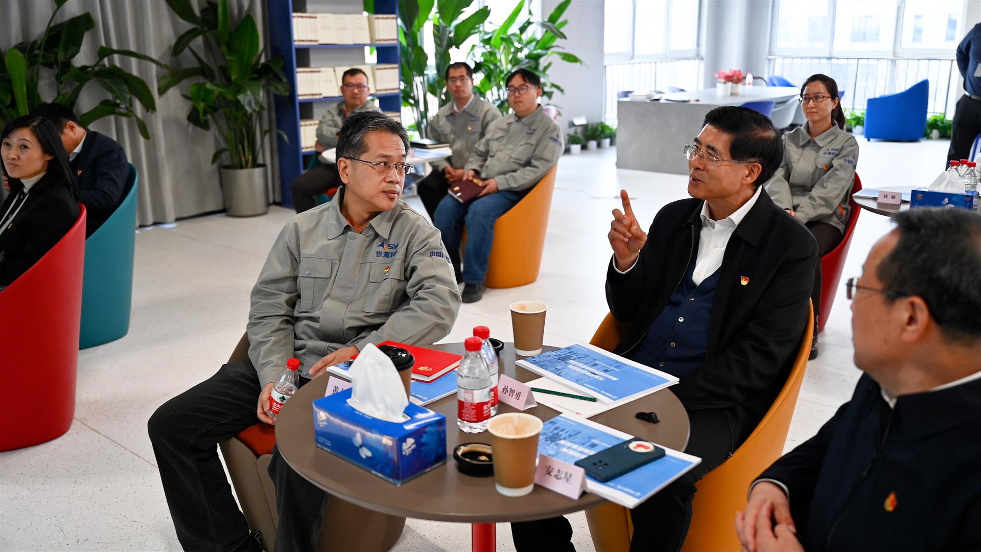 調研指導期間,孫智勇一行走訪了世源科技公司辦公區,觀看了企業文化墻,并與工藝所員工親切交談;隨后參觀電子院展廳,詳細了解中國電子院企業文化、發展歷史、科研創新等方面情況。聽取世源科技公司黨委基本情況、核心業務以及主題教育工作匯報,并與世源科技部分中層干部代表進行座談交流。