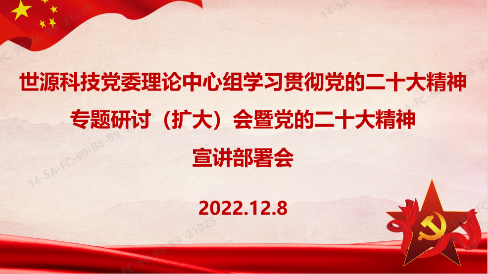 了解詳情 >12月8日,世源科技黨委組織召開第四季度黨委中心組學習貫徹黨的二十大精神(擴大)會暨黨的二十大精神宣講部署會。